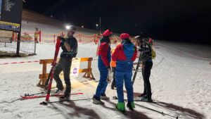 Quickly rip off the skins, report my number, and go! At this point, it looks like I’m the last one in the leading group. I can’t see Stefan anymore, but during the descent into the valley along the blue slope no. 9, I manage to overtake one guy. At the bottom, near the start of the next lift, I focus on switching gear and manage to leave the transition area in 5th place. And of course, I quickly grab another piece of wood they’re inserting into my hand again.