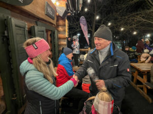 Crossing the finish line is somethingwhat anyone can do, but the Steigfell Metzelei always has something special. At the finish line, you have to take off your skis, run up the stairs to the Prijut 12 hut, and ring the bell. That’s the moment the clock stops, sending the already excited crowd into a frenzy. I finished after 16 km, 1600 meters of elevation, and 8 climbs in 2 hours and 7 minutes. It was exactly 10 minutes behind the winner. Stefan, my favorite, ultimately finished the race with the “potato medal,” in 2 hours and 5 minutes. The winner was Ernst Schwarz, crossing the line in 1 hour and 57 minutes.
