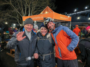And what about the wood? The final 16th piece was given to me at the finish line after ringing the bell. At one point, I pulled it all out of my pocket, completely confused about what it was for. I handed it to Laura, who cleverly arranged it into a beautiful Steigfell Metzelei logo. Another testament of how funny and well desugned this race is down to the last detail. I’d like to thank the race director, Martin for organizing this celebration of ski mountaineering in the Erz Gebirge. The only thing I regret is not being able to stay for the après-ski party!